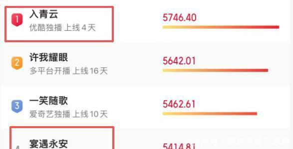 于是将两部剧各看了6集,发现两部剧对比之下,差距实在是太大了! 就从最直不雅地热度来看吧。 《入青云》开播48小时热度就飙到了9852,告成把同时两部S+古偶压在了死后,开播3第二天就稳坐古装剧热度榜第一的位置。 反不雅《宴遇永安》,热度就显得有些乏力了,连前3齐莫得进去。